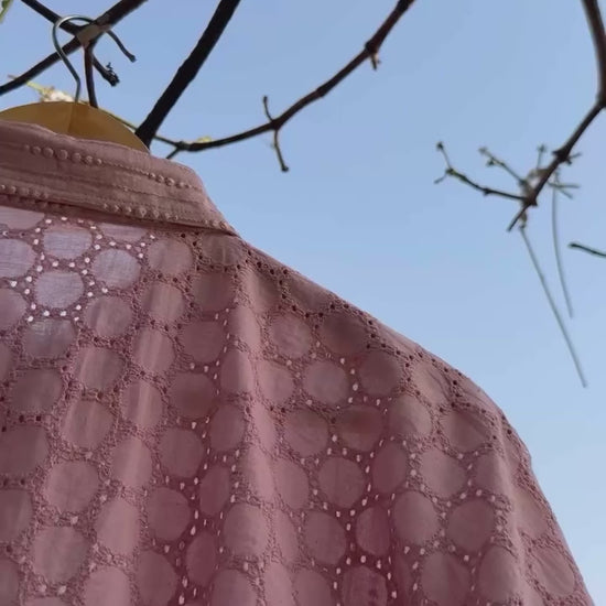 • Fabric: Fine Chikankari with contrast fabric paneling